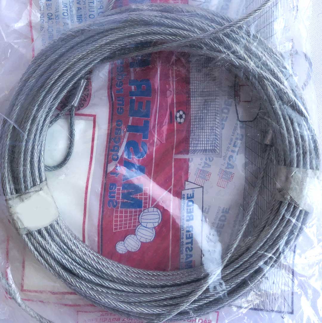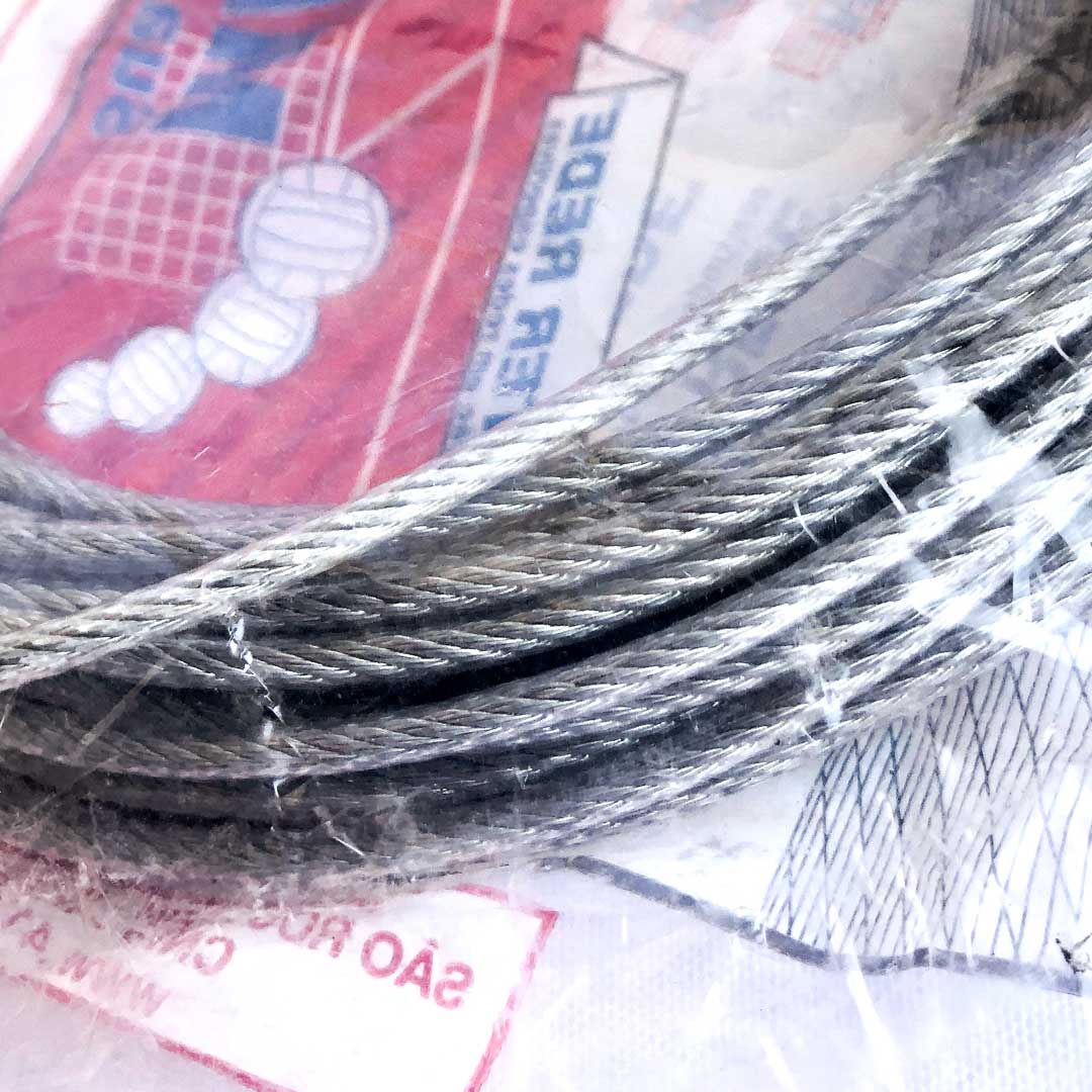 – Cabo de aço galvanizado com 15 m x 3/32″ para rede de tênis.