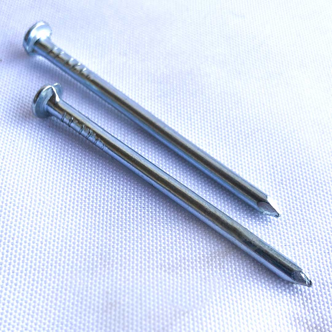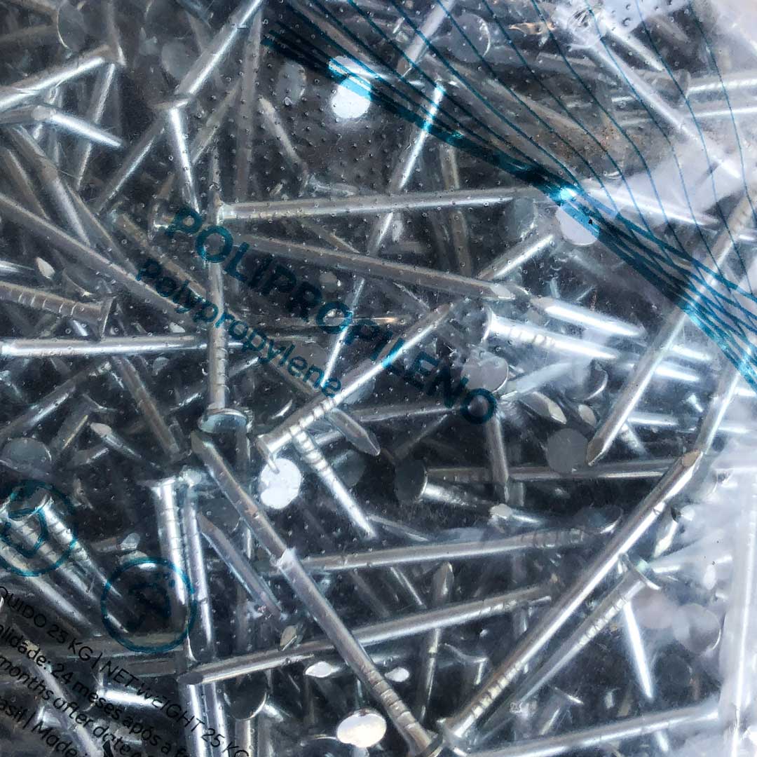 Os pregos galvanizados tem 18 x 27 e são de cabeça chata medindo 8 mm.